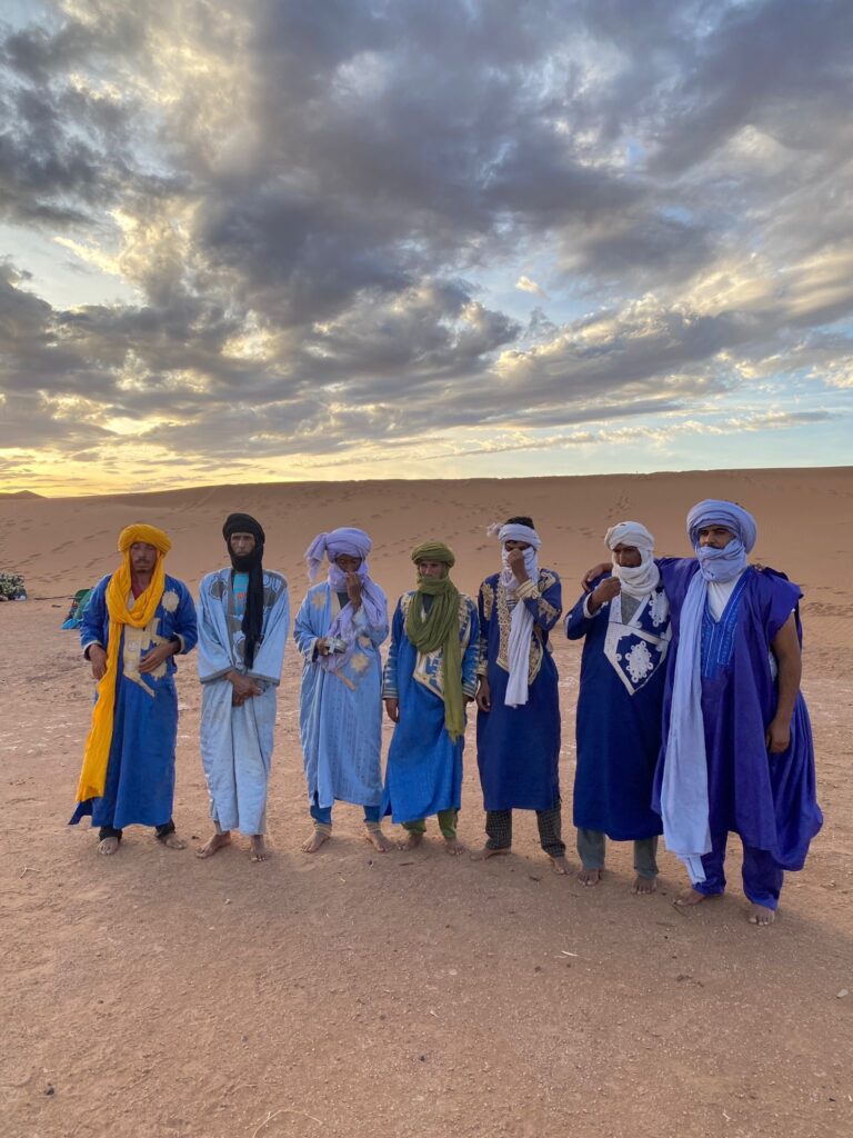 - 17th – Day 2: Early departure from Marrakech – Crossing the Atlas mountains on the highest road in Morocco – Passage of the Tizi nTichka summit – Lunch break in Ouarzazate – Descent into the Draa valley to M’Hamid – Transfer by 4×4 to the fix base camp located in the dunes Welcome tea – Dinner – Evening with music by the Nomads around the fire and intention setting ceremony – We sleep at the fixed base camp in comfortable beds, linen & towels are provided.