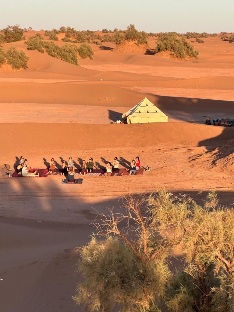 - 22nd – Day 7: Final Morning yoga practice before returning to M’Hamid and departure for Marrakech – Lunch along the way – Arrival in Marrakech at the end of the day, we suggest all participants to sleep in Marrakech and book a return fight on the 23rd.